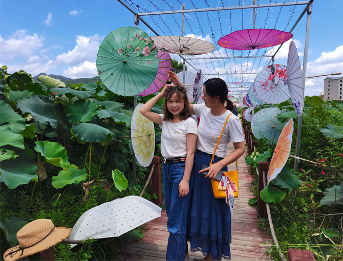 接下來是去參觀河圳口荷花場,剛好碰到園里的荷花正在悄然綻放,走進去如漫步云端,如置身仙境。不禁讓人想起一句詩詞:蓮之出淤泥而不染,濯清漣而不妖,中通外直,不蔓不枝,香遠益清,亭亭凈植,可遠觀而不可褻玩焉。